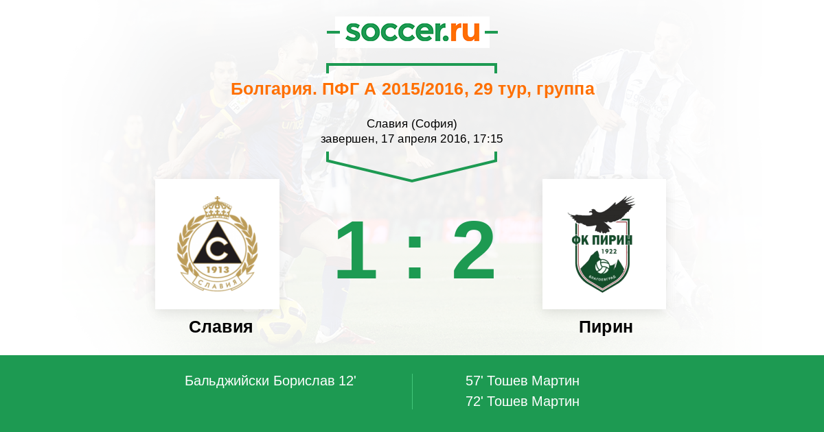 Протокол матча Славия против Пирин
