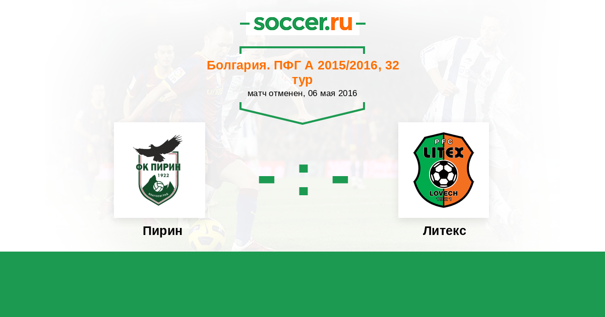Болгария. Первая лига 14.08.2010 Литекс Логотип футбольный клуб Литекс (Ловеч) 2:1 Логотип футбольный клуб Пирин (Благоевград) Пирин