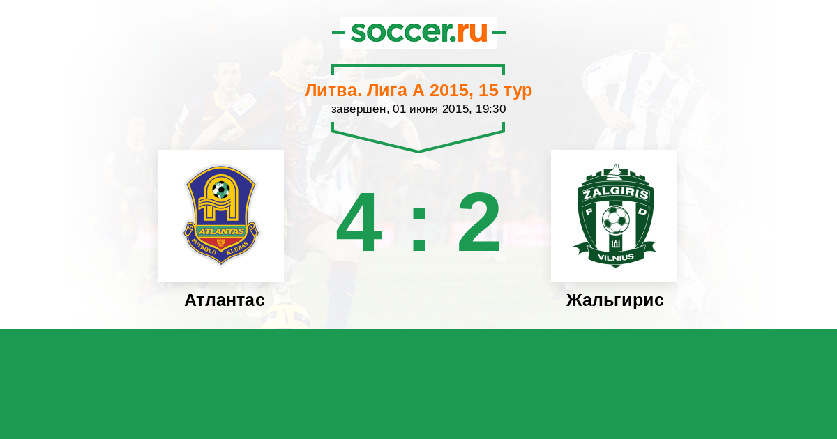 Литва. Лига А 03.04.2015 Жальгирис Логотип футбольный клуб Жальгирис (Вильнюс) 2:0 Логотип футбольный клуб Атлантас (Клайпеда) Атлантас