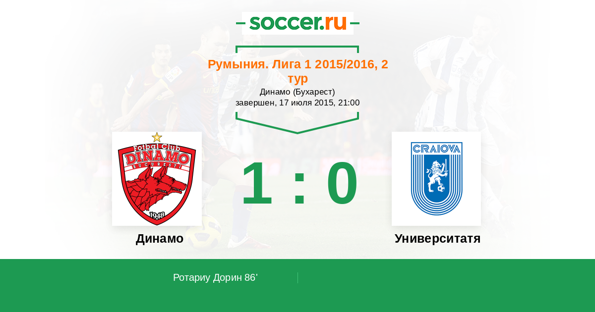 Протокол матча Динамо против Университатя Крайова