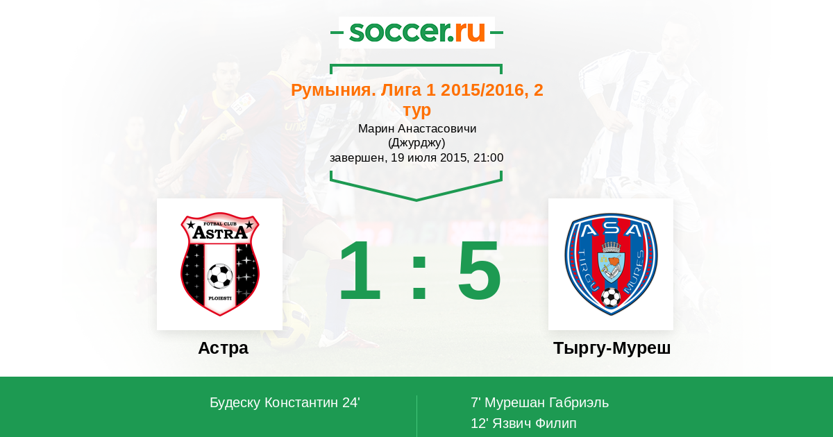 Протокол матча Астра против Тыргу-Муреш