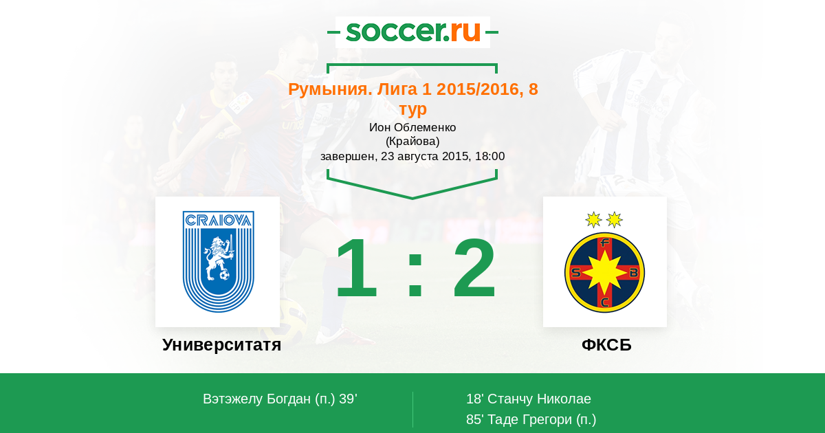 18' (0:1) Станчу Николае (10)