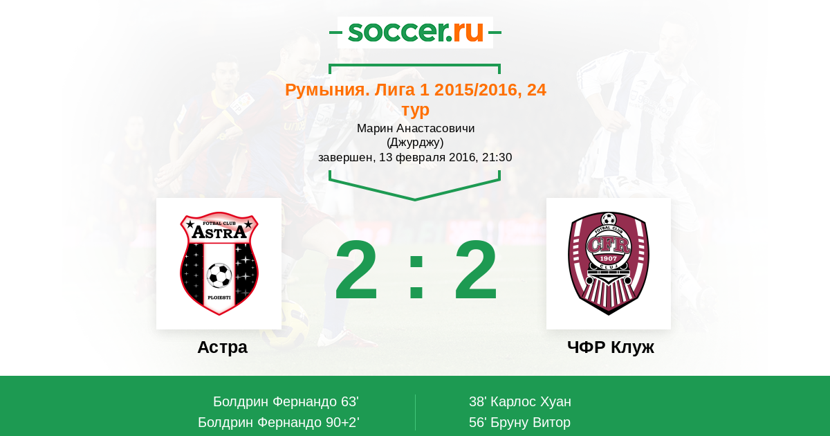 Протокол матча Астра против ЧФР Клуж