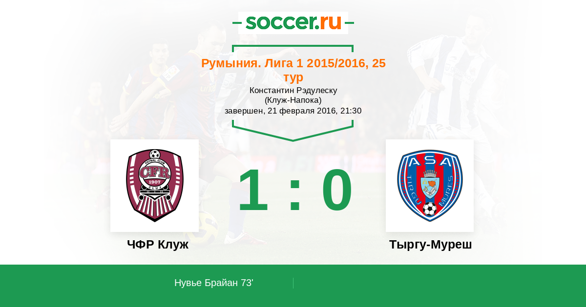 Протокол матча ЧФР Клуж против Тыргу-Муреш