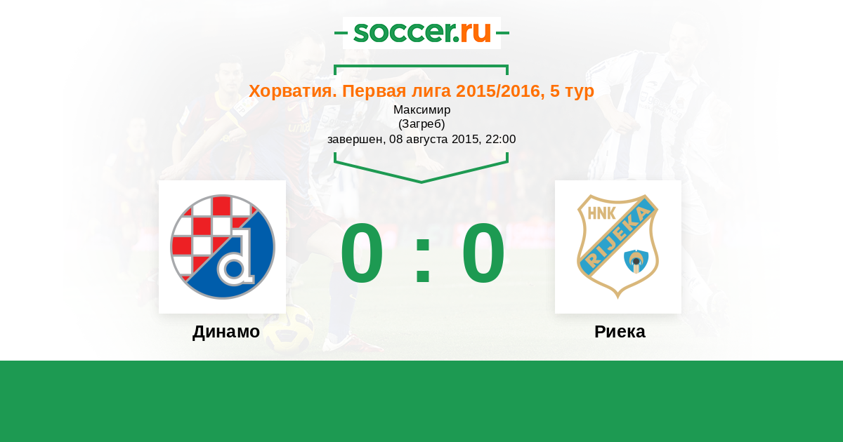 Хорватия. Первая лига 21.02.2016 Динамо Логотип футбольный клуб Динамо (Загреб) 3:0 Логотип футбольный клуб Риека Риека