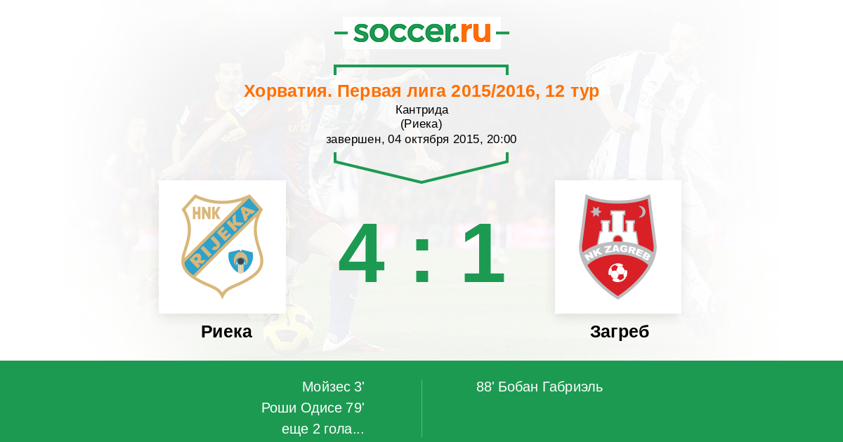 Протокол матча Риека против Загреб