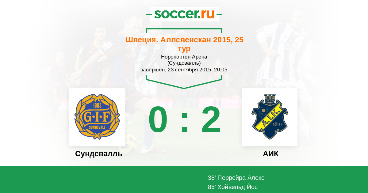 Протокол матча Сундсвалль против АИК