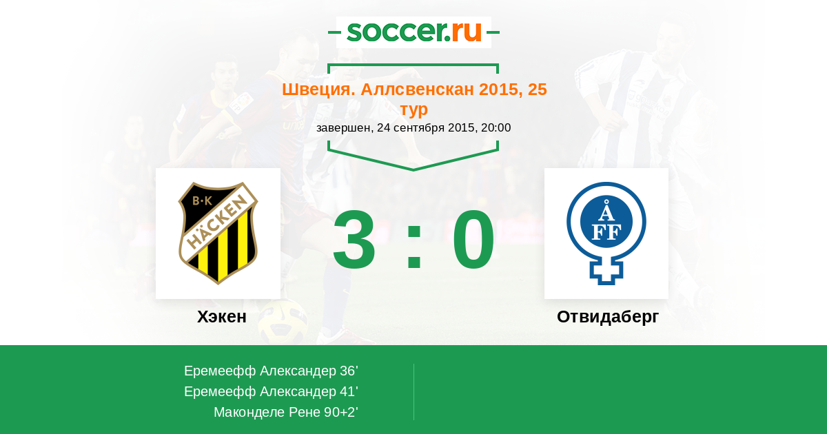 Протокол матча Хэкен против Отвидаберг