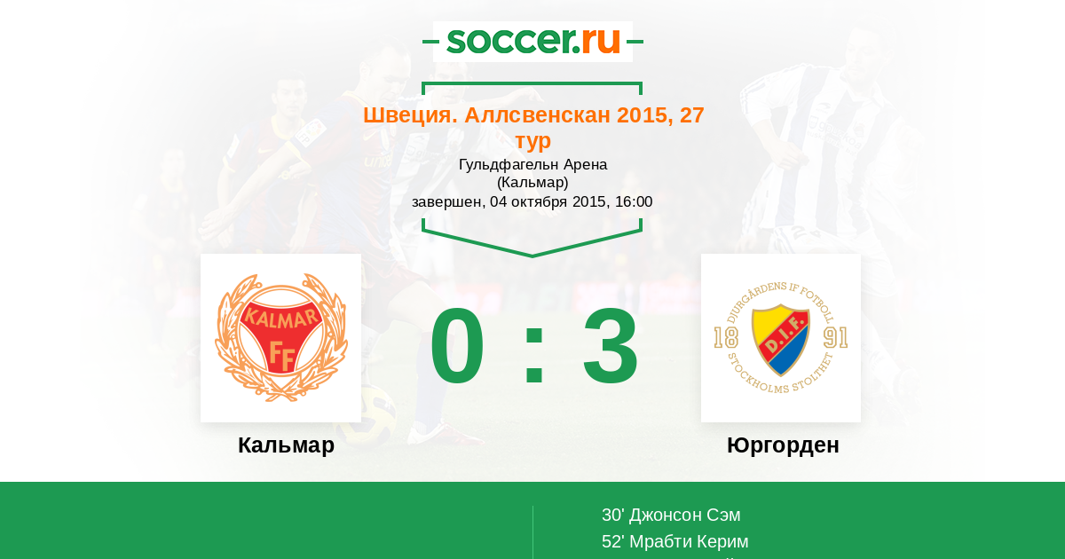 Протокол матча Кальмар против Юргорден