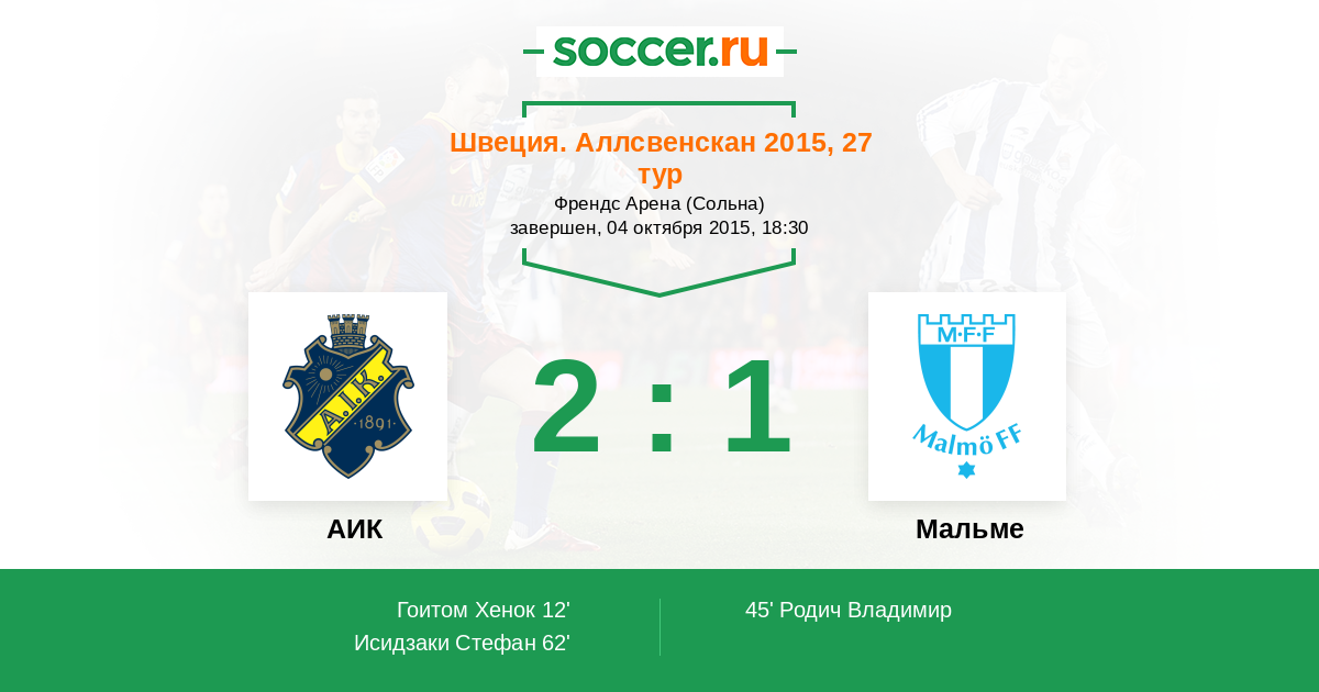 Протокол матча АИК против Мальме