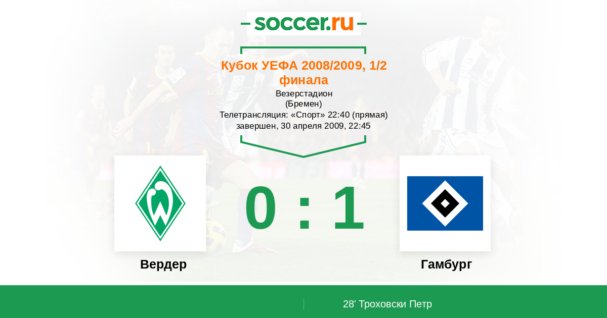 Протокол матча Вердер против Гамбург