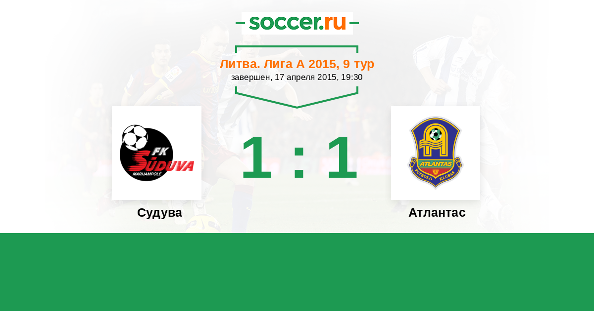 22.09.2015 Атлантас Логотип футбольный клуб Атлантас (Клайпеда) 0:1 Логотип футбольный клуб Судува (Мариямполе) Судува