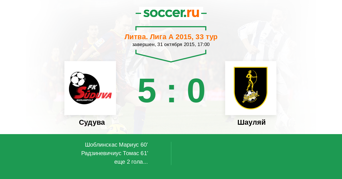 60' (1:0) Шоблинскас Мариус