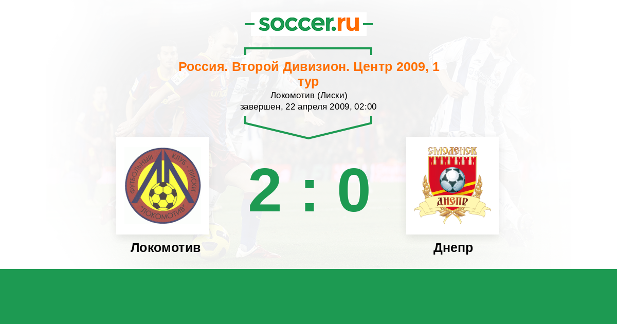Россия. Вторая лига. Группа 3 25.10.2009 Днепр Логотип футбольный клуб Днепр (Смоленск) 1:2 Логотип футбольный клуб Локомотив (Лиски) Локомотив