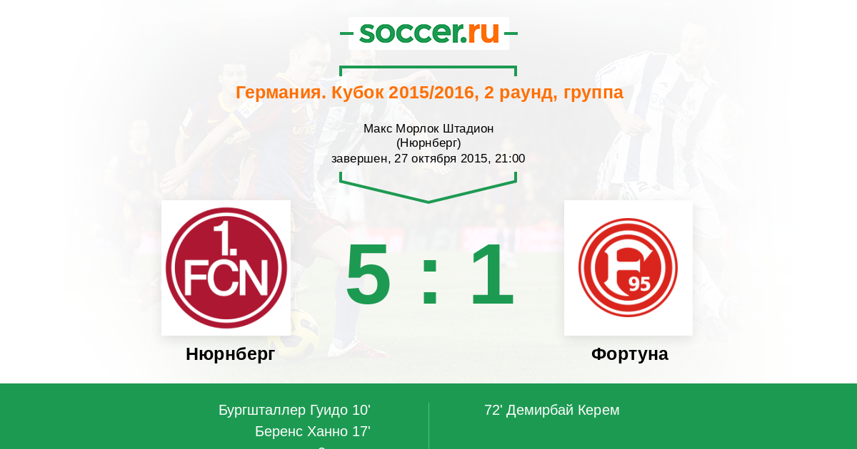 Протокол матча Нюрнберг против Фортуна