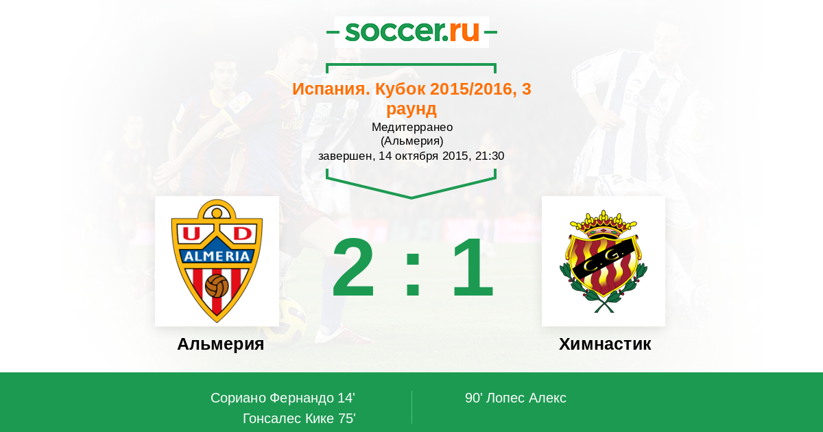 Протокол матча Альмерия против Химнастик