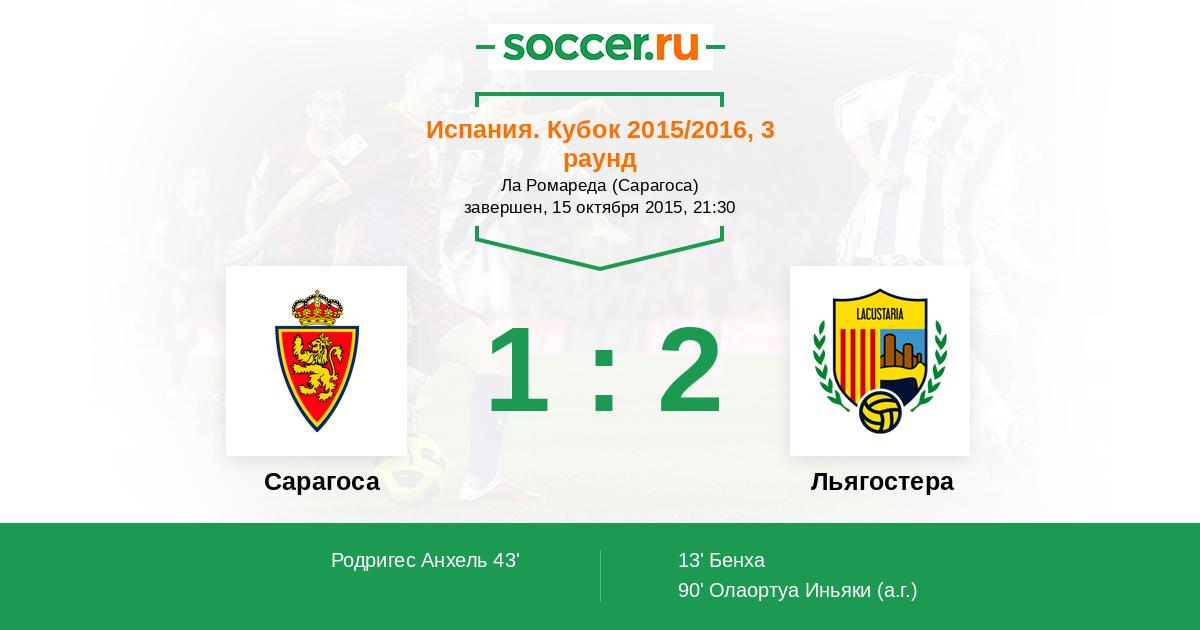 Протокол матча Сарагоса против Льягостера