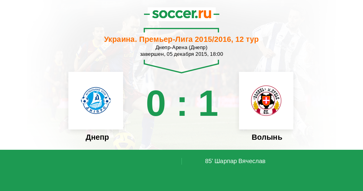 Протокол матча Днепр против Волынь