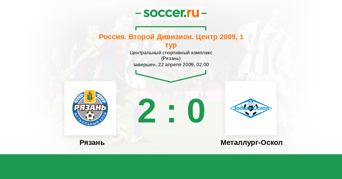 Россия. Вторая лига. Группа 3 25.10.2009 Металлург-Оскол Логотип футбольный клуб Металлург-Оскол (Старый Оскол) 3:1 Логотип футбольный клуб Звезда Рз (Рязань) Звезда Рз