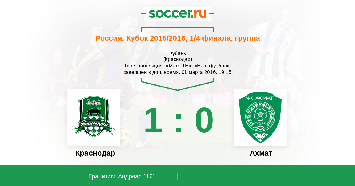 Гол116' (1:0) Гол после углового Гранквист Андреас (6)