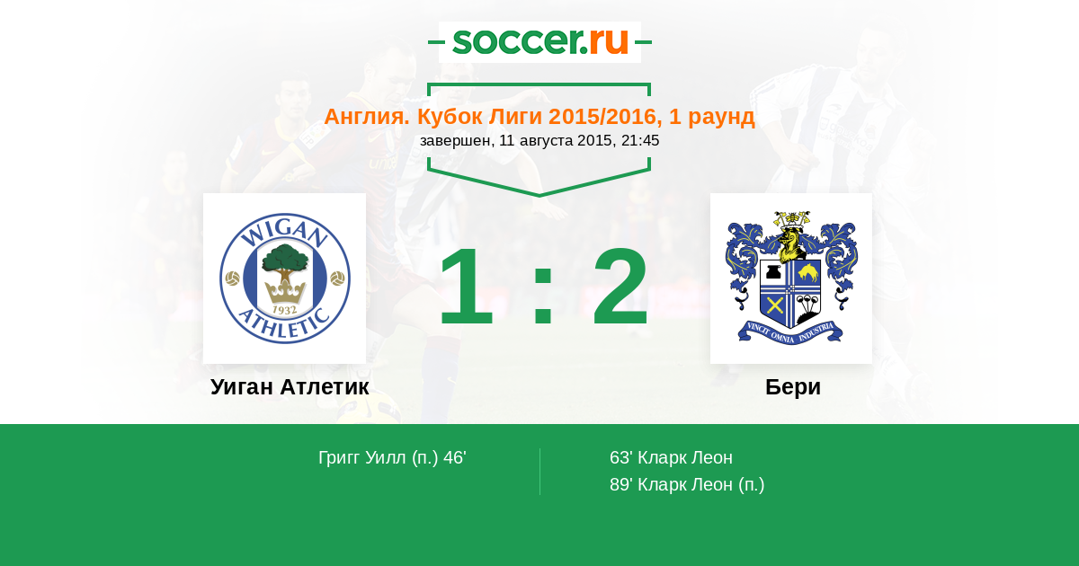 Протокол матча Уиган Атлетик против Бери