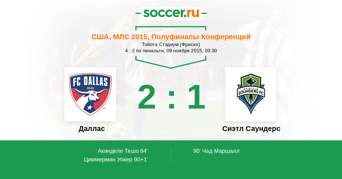 Протокол матча Даллас против Сиэтл Саундерс