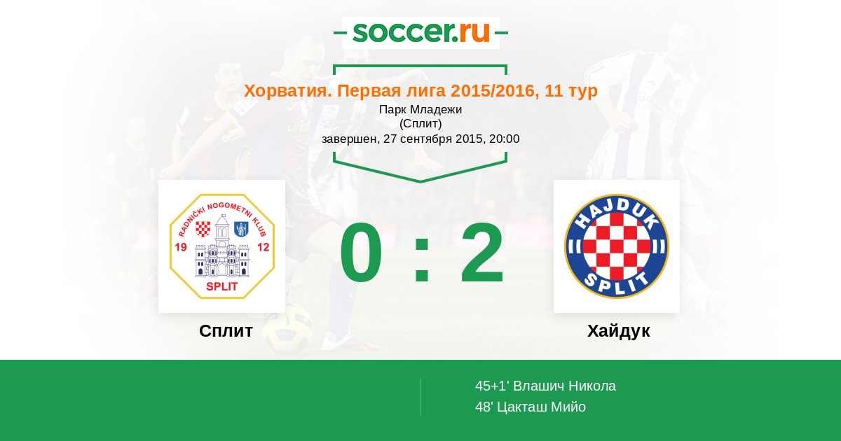 Протокол матча Сплит против Хайдук