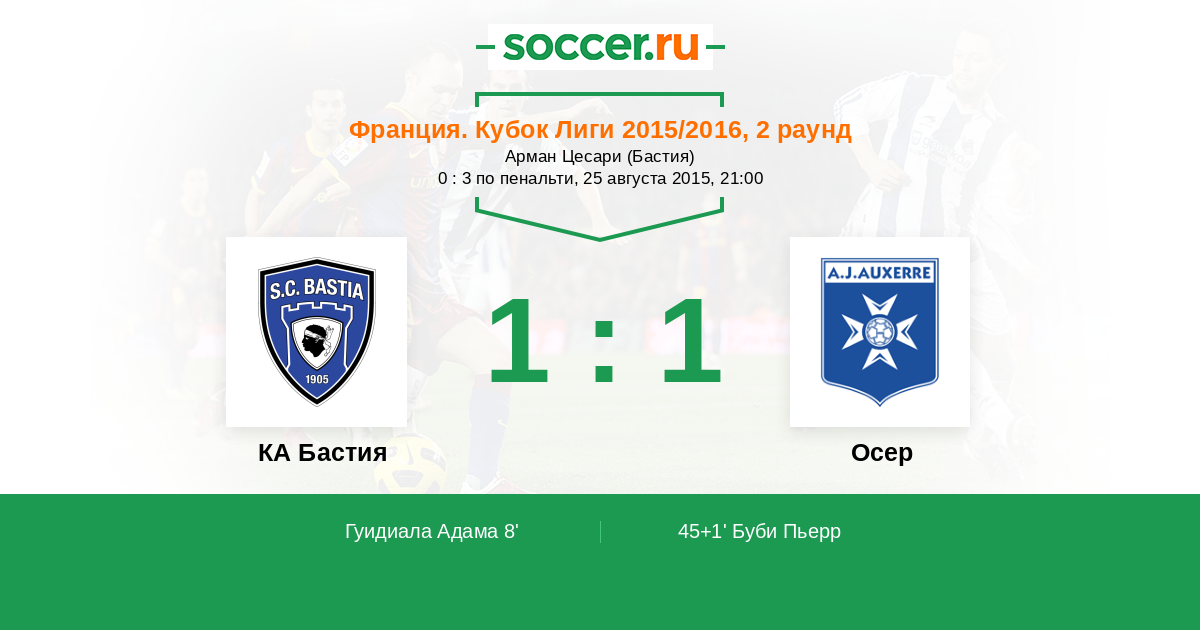 Протокол матча КА Бастия против Осер