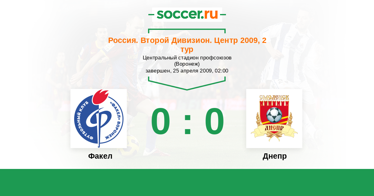 Россия. Вторая лига. Группа 3 28.10.2009 Днепр Логотип футбольный клуб Днепр (Смоленск) 3:0 Логотип футбольный клуб Факел (Воронеж) Факел