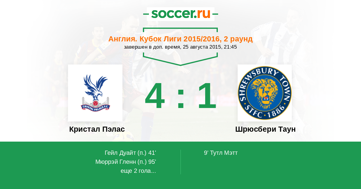 Протокол матча Кристал Пэлас против Шрюсбери Таун