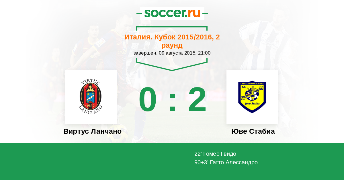 Протокол матча Виртус Ланчано против Юве Стабиа