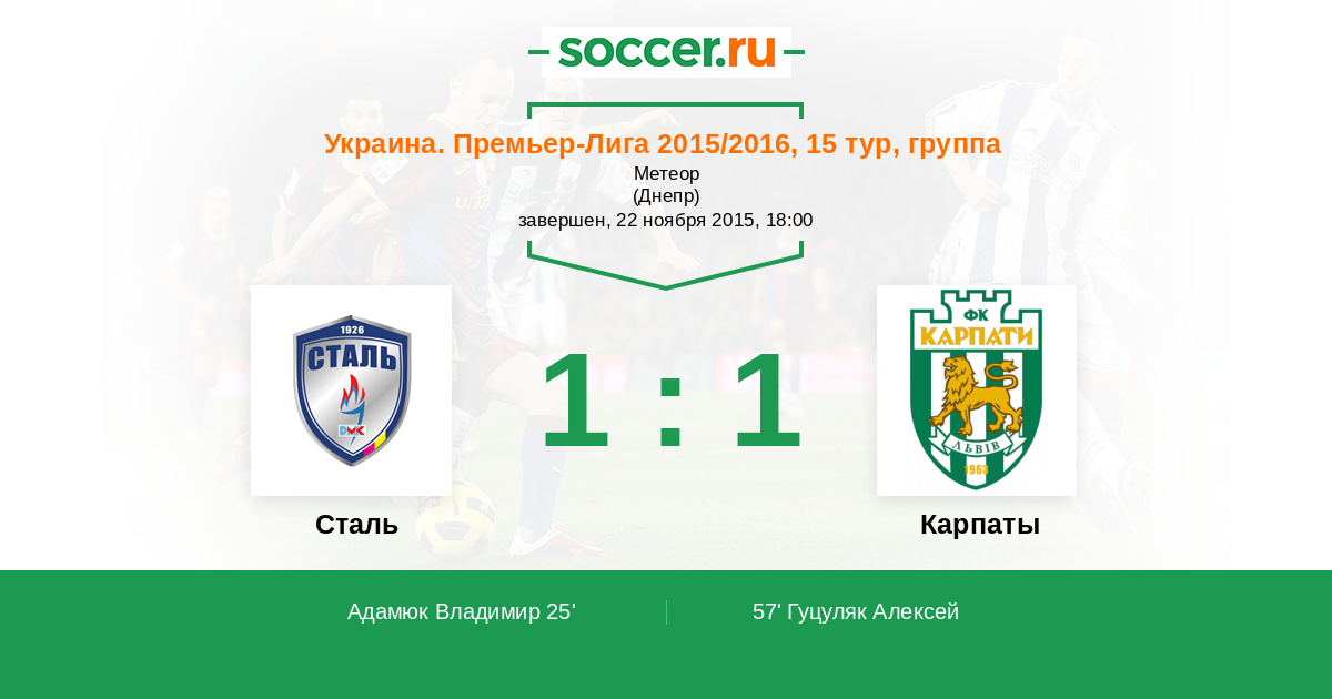 Протокол матча Сталь против Карпаты