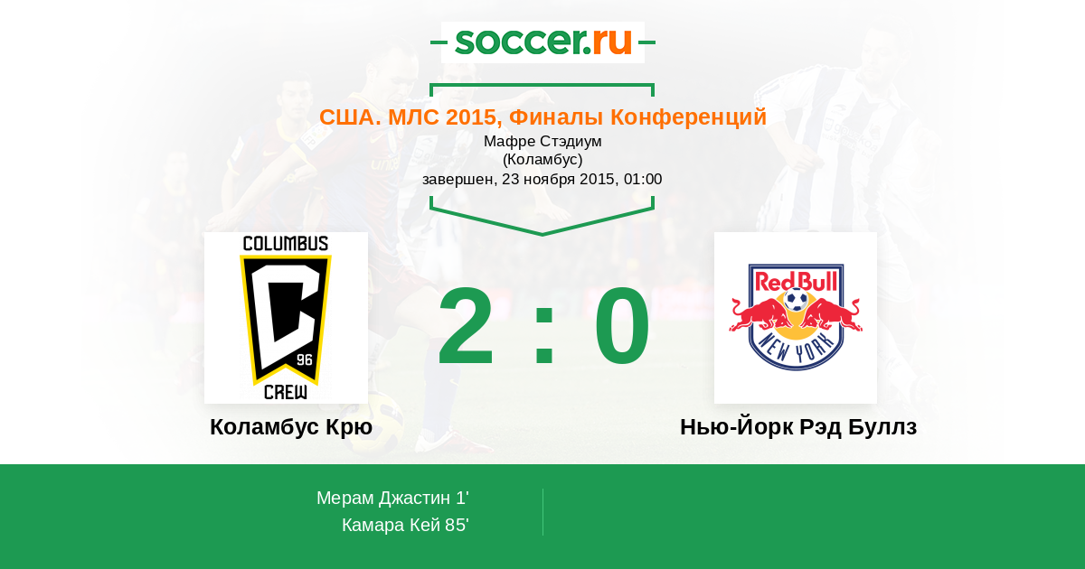 Протокол матча Коламбус Крю против Нью-Йорк Рэд Буллз