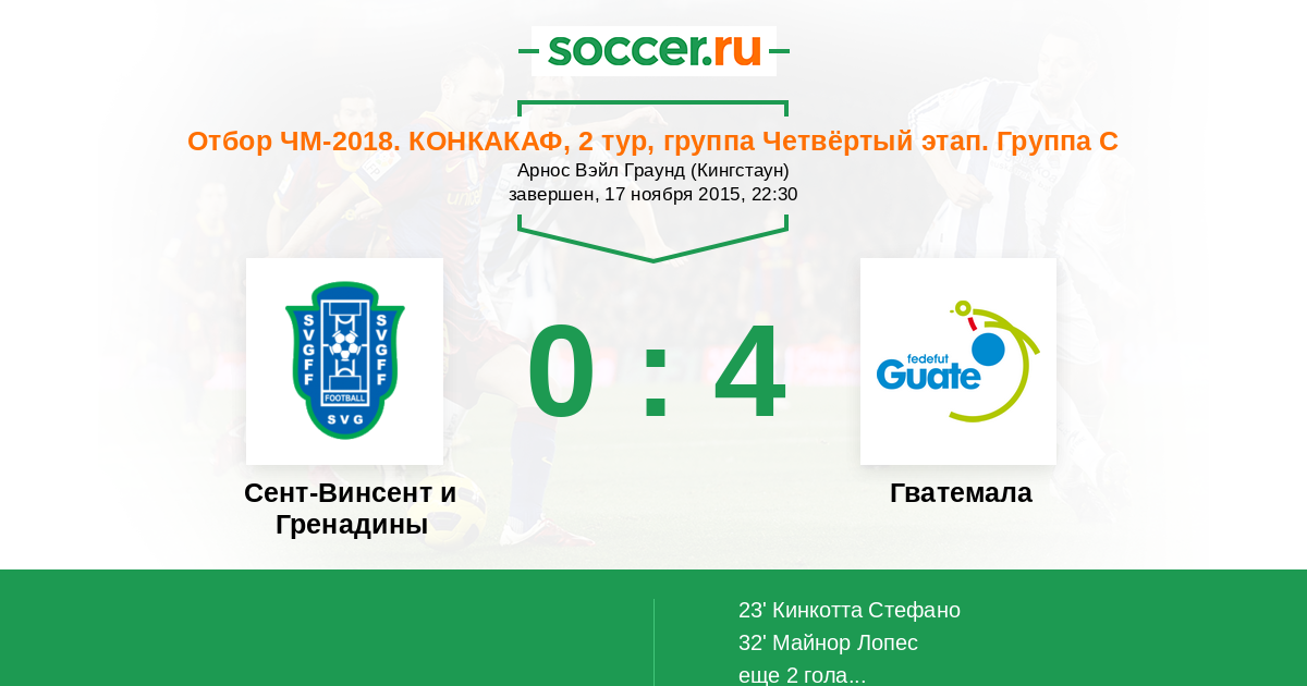 Протокол матча Сент-Винсент и Гренадины против Гватемала