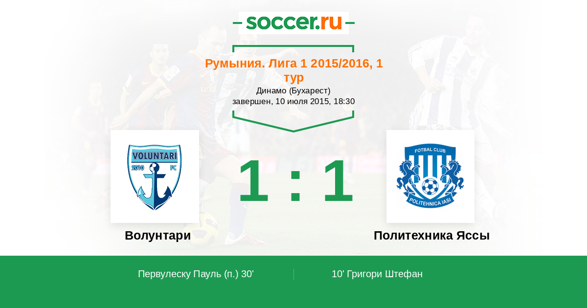 Протокол матча Волунтари против Политехника Яссы