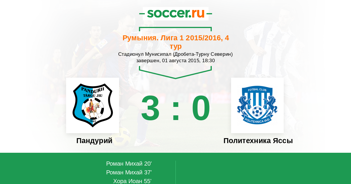Протокол матча Пандурий против Политехника Яссы