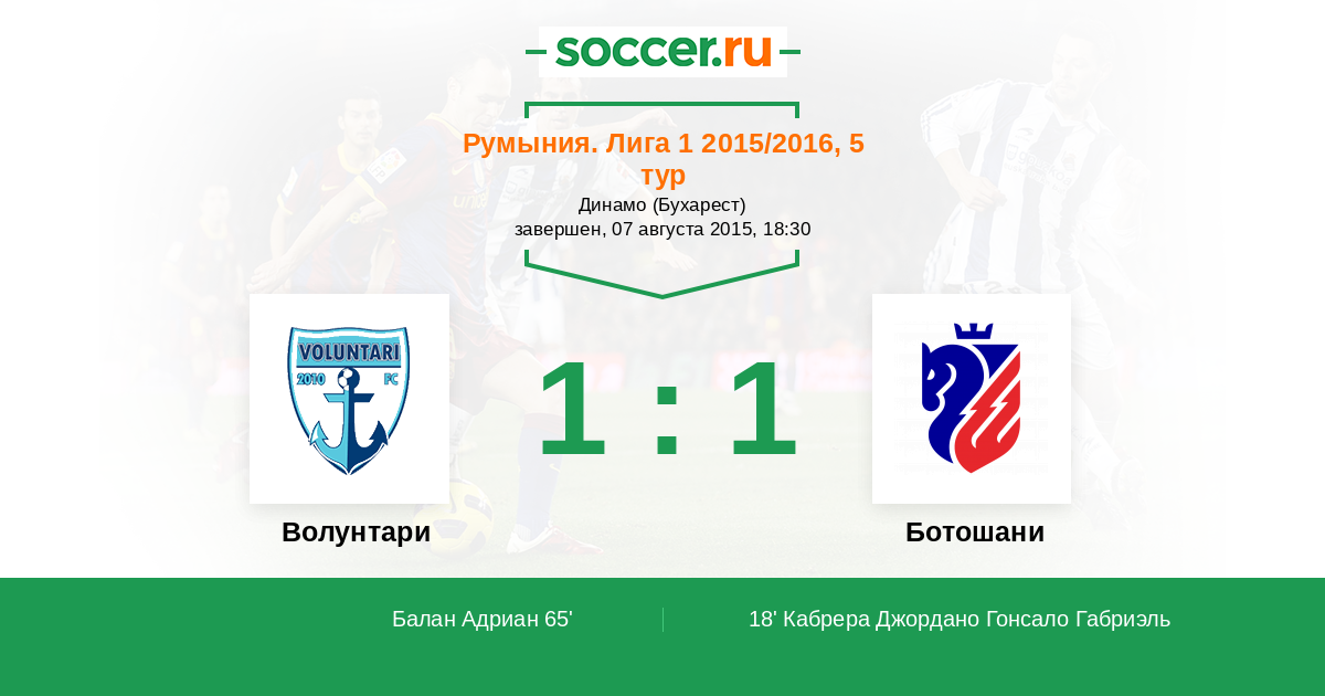 Протокол матча Волунтари против Ботошани