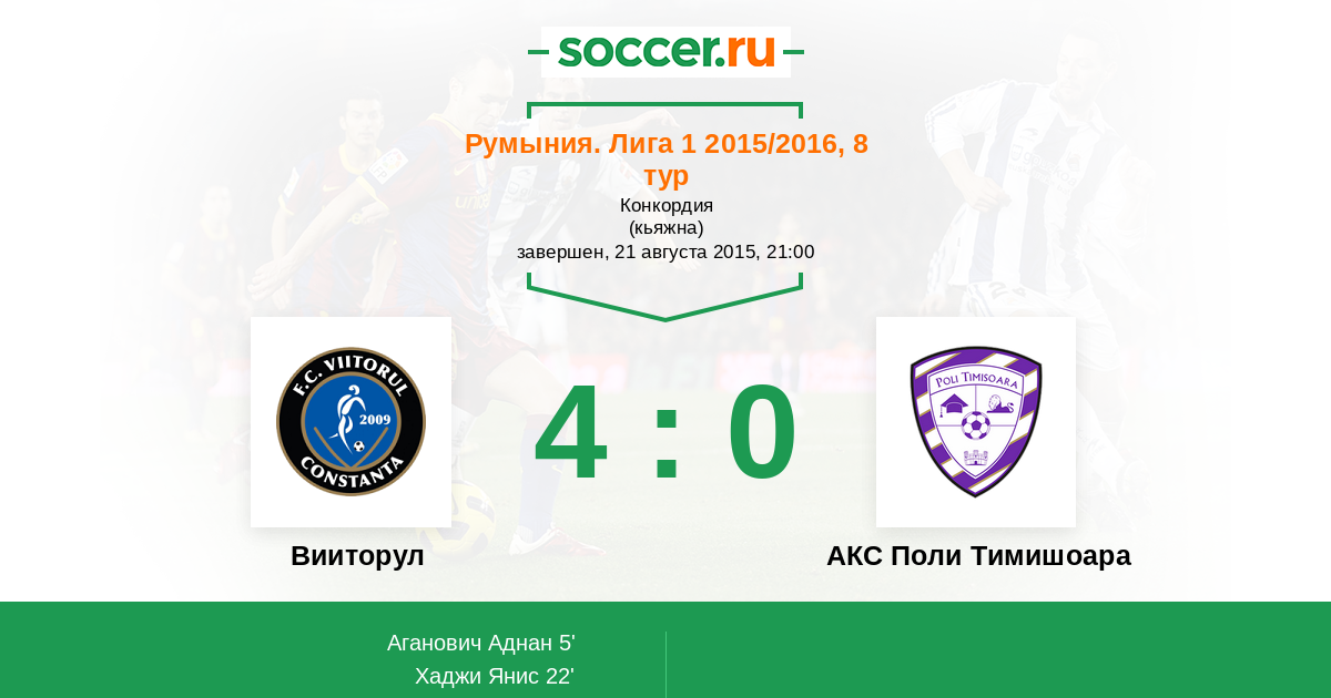 Протокол матча Вииторул против АКС Поли Тимишоара