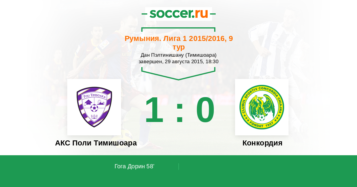Протокол матча АКС Поли Тимишоара против Конкордия