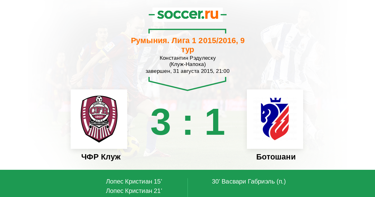 Протокол матча ЧФР Клуж против Ботошани