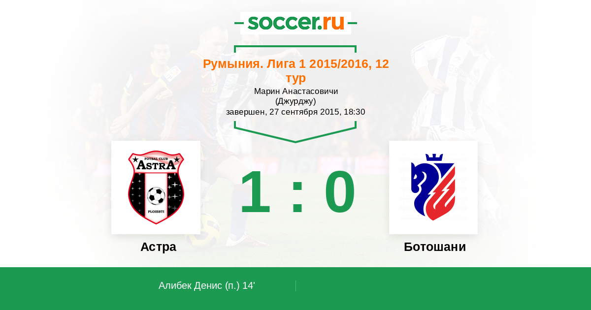 14' (1:0) Алибек Денис (7)