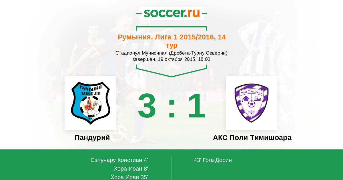 Протокол матча Пандурий против АКС Поли Тимишоара
