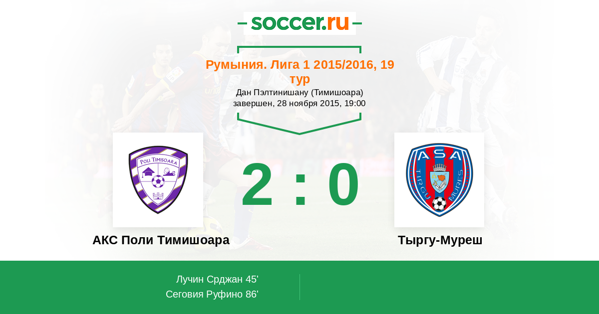 Протокол матча АКС Поли Тимишоара против Тыргу-Муреш