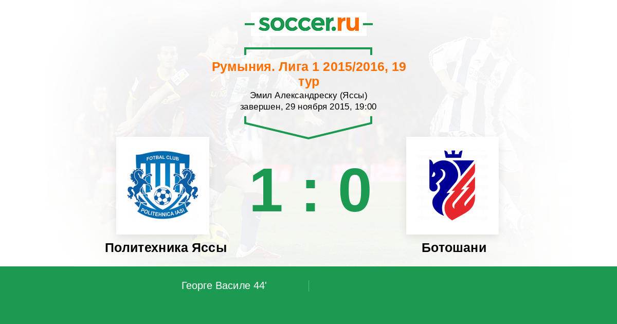 44' (1:0) Георге Василе (7)
