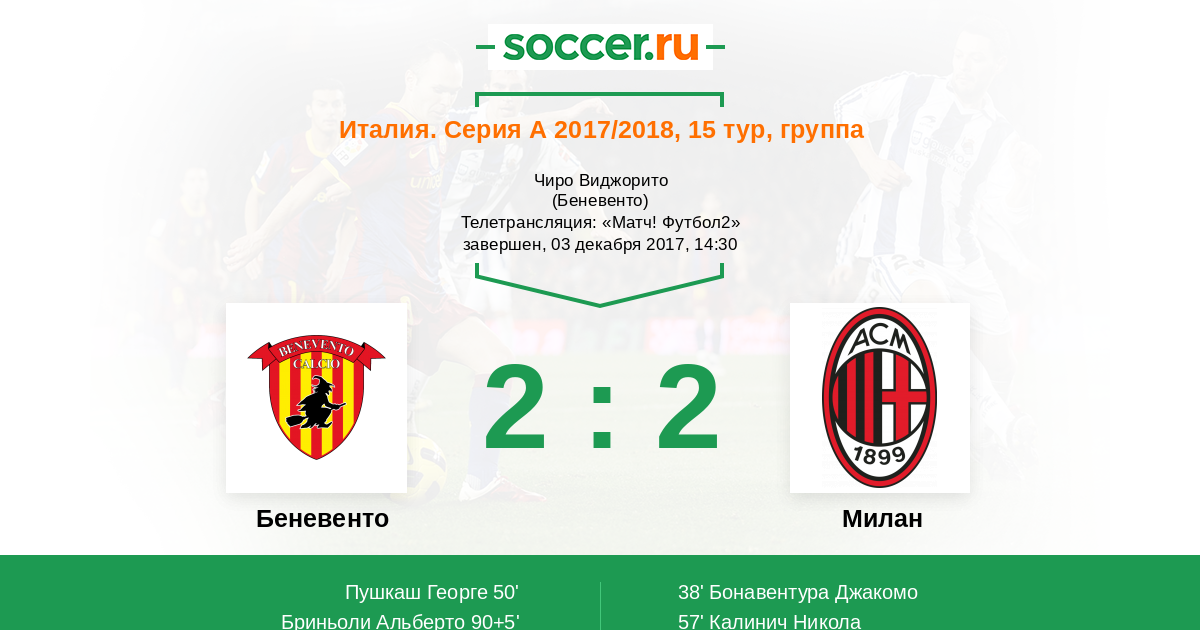 Помню, месяца полтора назад кто-то шутил, что Беневенто возьмет первые очки именно с Миланом. А может и не шутил...