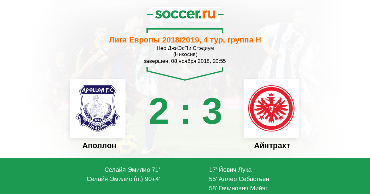 Записи блогов матча Аполлон против Айнтрахт