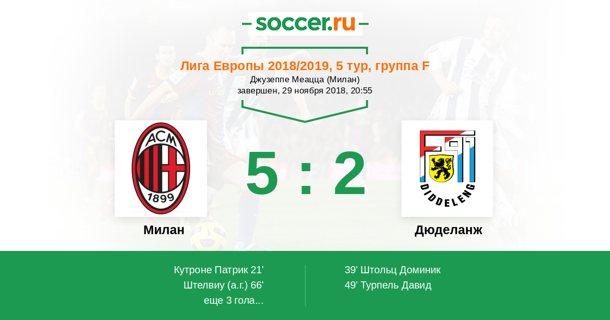 Записи блогов матча Милан против Дюделанж