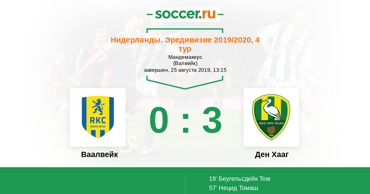 Записи блогов матча Ваалвейк против Ден Хааг