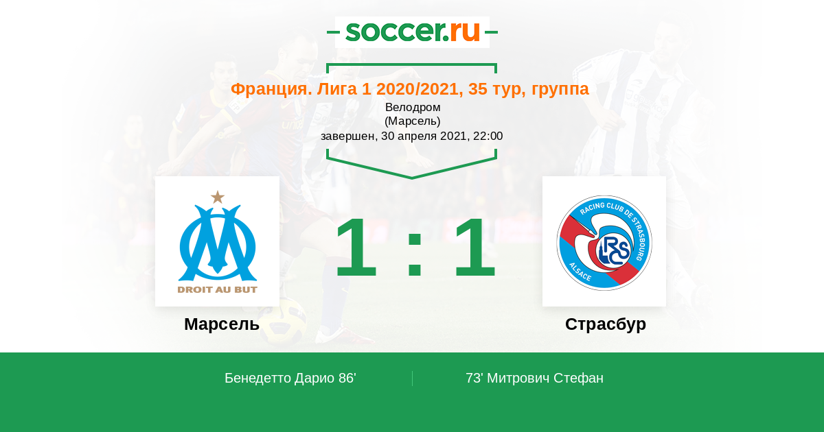 В 35-м туре чемпионата Франции очную встречу проведут «Марсель» и «Страсбур». Вашему вниманию обзор ставок букмекеров и прогноз на матч, который состоится 30 апреля.