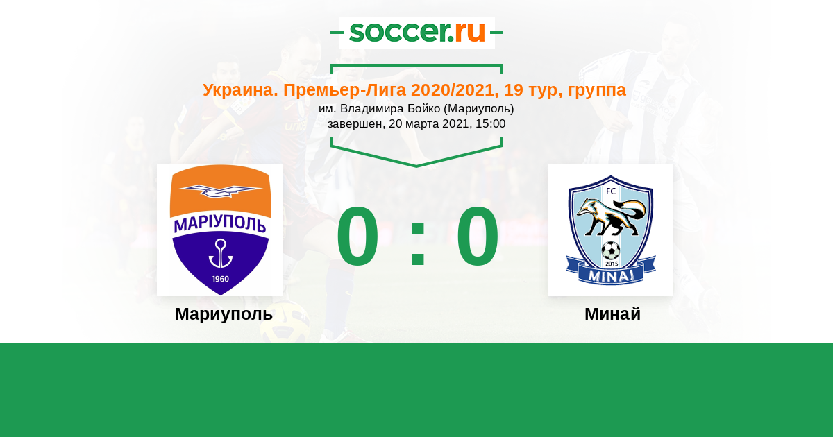 «Мариуполь» — «Минай». Прогноз на матч чемпионата Украины (20.03.2021)